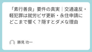 はじめまして。京都で申請取次(在留資格申請)のご相談をお受けしている、行政書士の勝見です。