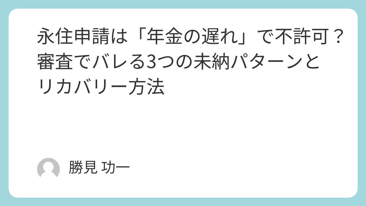 本記事では永住審査で年金が厳しくチェックされる理由と、よくある失敗パターン、そしてリカバリー方法を実務視点で解説します。