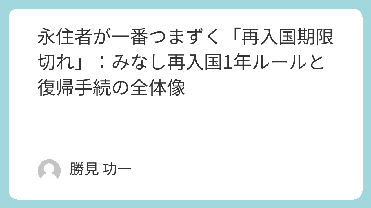 永住者が一番つまずく「再入国期限切れ」:みなし再入国1年ルールと復帰手続の全体像