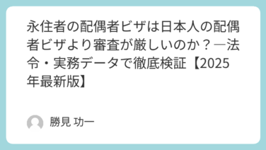 永住者の配偶者ビザは日本人配偶者ビザより審査が厳しい?という声や現場の印象について、法務省の審査基準・公式データ・行政書士実務をもとに最新事実を徹底的に検証。誤解や根拠、現場での注意点も詳しく解説します。