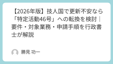 就労ビザ 【2026年版】技人国で更新不安なら「特定活動46号」への転換を検討|要件・対象業務・申請手順を行政書士が解説