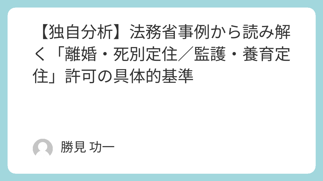 本記事ではこの法務省公表資料を詳細に分析し、離婚・死別定住と監護・養育定住における入管の具体的審査基準を読み解きます。
