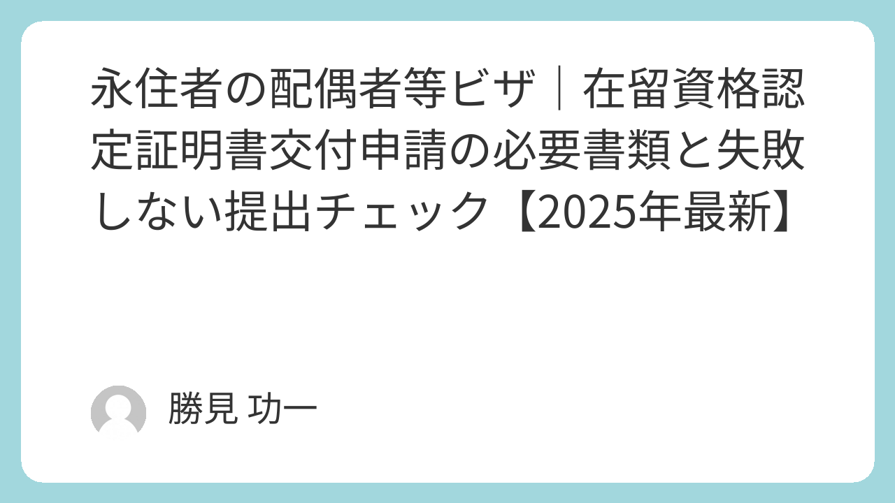 ➡️ 永住者の配偶者ビザ申請の必要書類と不許可防止ポイントガイドはこちら:[永住者の配偶者ビザ申請の必要書類と不許可防止ポイントガイドを詳しく見る]