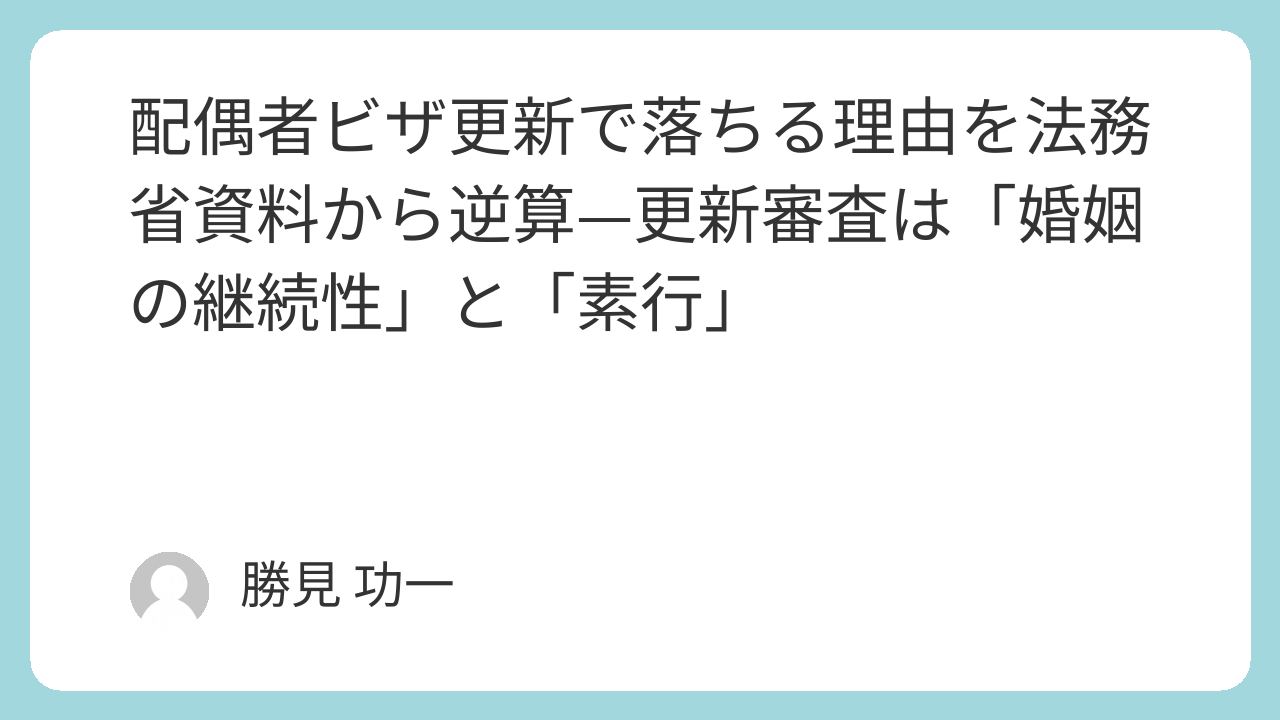 配偶者ビザ更新で落ちる理由を法務省資料から逆算—更新審査は「婚姻の継続性」と「素行」