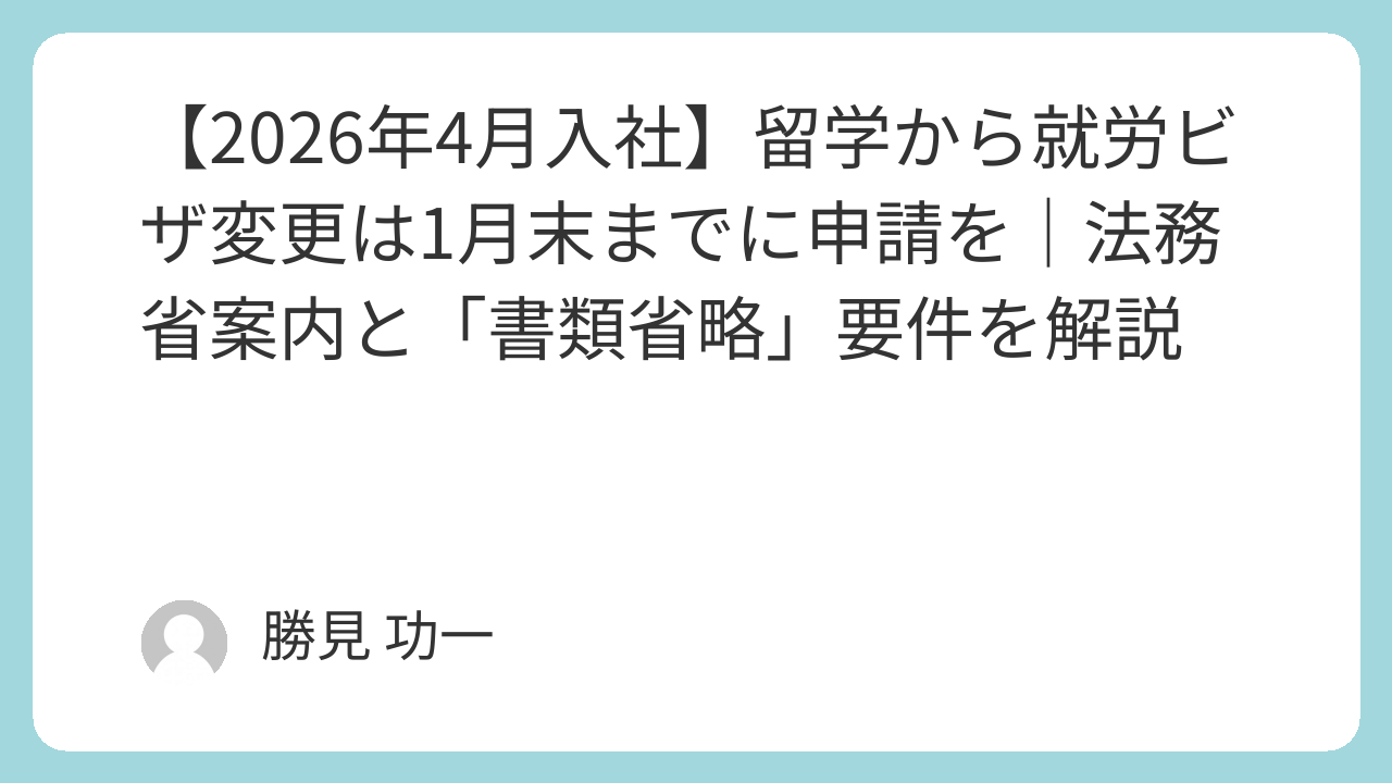 本記事は、法務省(出入国在留管理庁)が公表している「在留資格『留学』から就労資格への変更申請を予定されている皆様へ」および関連リーフレット、2025年12月施行の運用改正情報に基づき作成しています。最新の様式や詳細な提出書類リストは、必ず出入国在留管理庁公式をご確認ください。