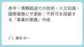例:「当社が扱うシステムは海外製であり、英語マニュアルの翻訳および海外ベンダーとの技術折衝が必須です。〇〇氏(外国人社員)は、情報工学専攻かつ英語堪能であり、この業務を担当します。」