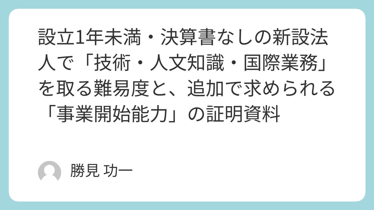「会社を設立したばかりで決算書がない。この状態で外国人の就労ビザ(技術・人文知識・国際業務)は取れるのか?」——新設法人の経営者や人事担当者から、こうした不安の声が数多く寄せられます。